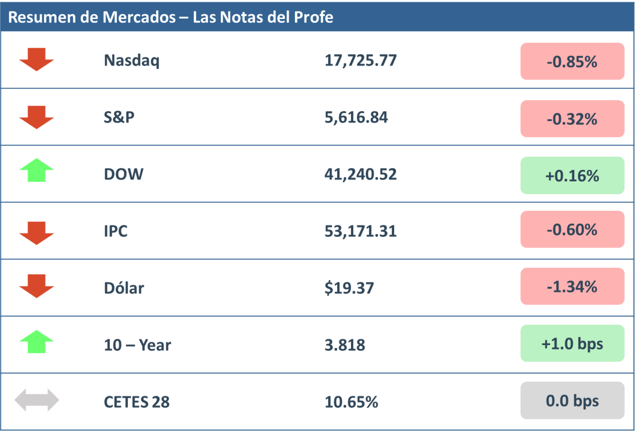 Intel 💻 -2%: Intel experimentó una caída tras reportes de que ha contratado asesores para defenderse contra posibles activismos de los accionistas, en un intento por competir con Nvidia en el ámbito de la inteligencia artificial.