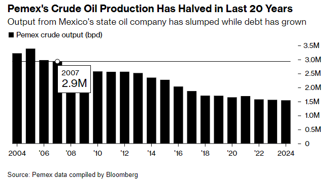 Rodríguez, quien ha colaborado académicamente con Sheinbaum en el pasado, deberá enfrentar no solo la caída en la producción, que ha bajado a la mitad de su máximo hace 20 años, sino también una infraestructura envejecida que ha sido responsable de accidentes y derrames. Además, la empresa sigue dependiendo en gran medida de ayudas gubernamentales para mantenerse a flote, lo que ha incluido inyecciones de capital y alivios fiscales de hasta $80 mil millones durante el gobierno de AMLO.