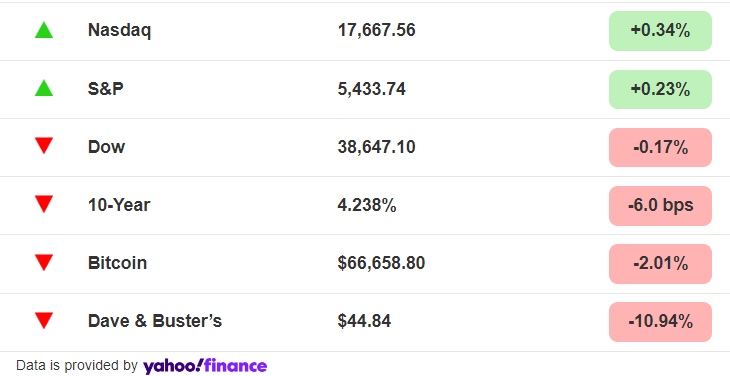 Dave and Buster’s: Las acciones cayeron un 11% después de que los ingresos del primer trimestre no cumplieran con las expectativas. 🎮
